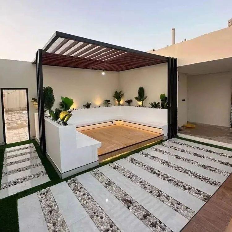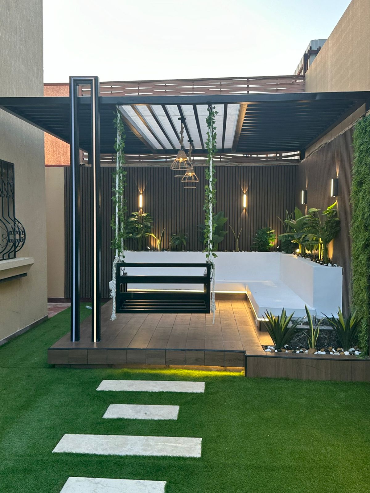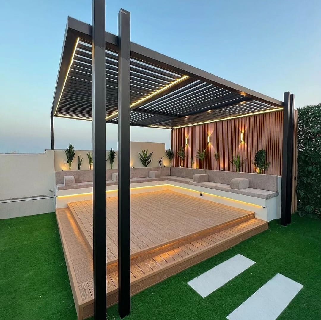 وايضا نقوم بتصميم وتنفيذ المظلات والأسترحات والممرات بأحدث التصميمات وأجود الخامات لتعطي أفضل عمر أفترضي وتعطي حديقتك الشكل المصالي لمنزل العصري